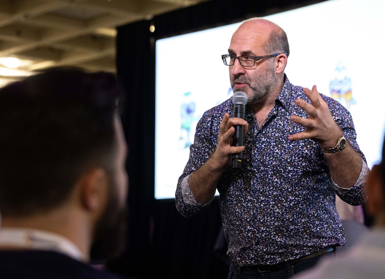 GDC Pitch host Jason Della Rocca adresses an audience at GDC 2025